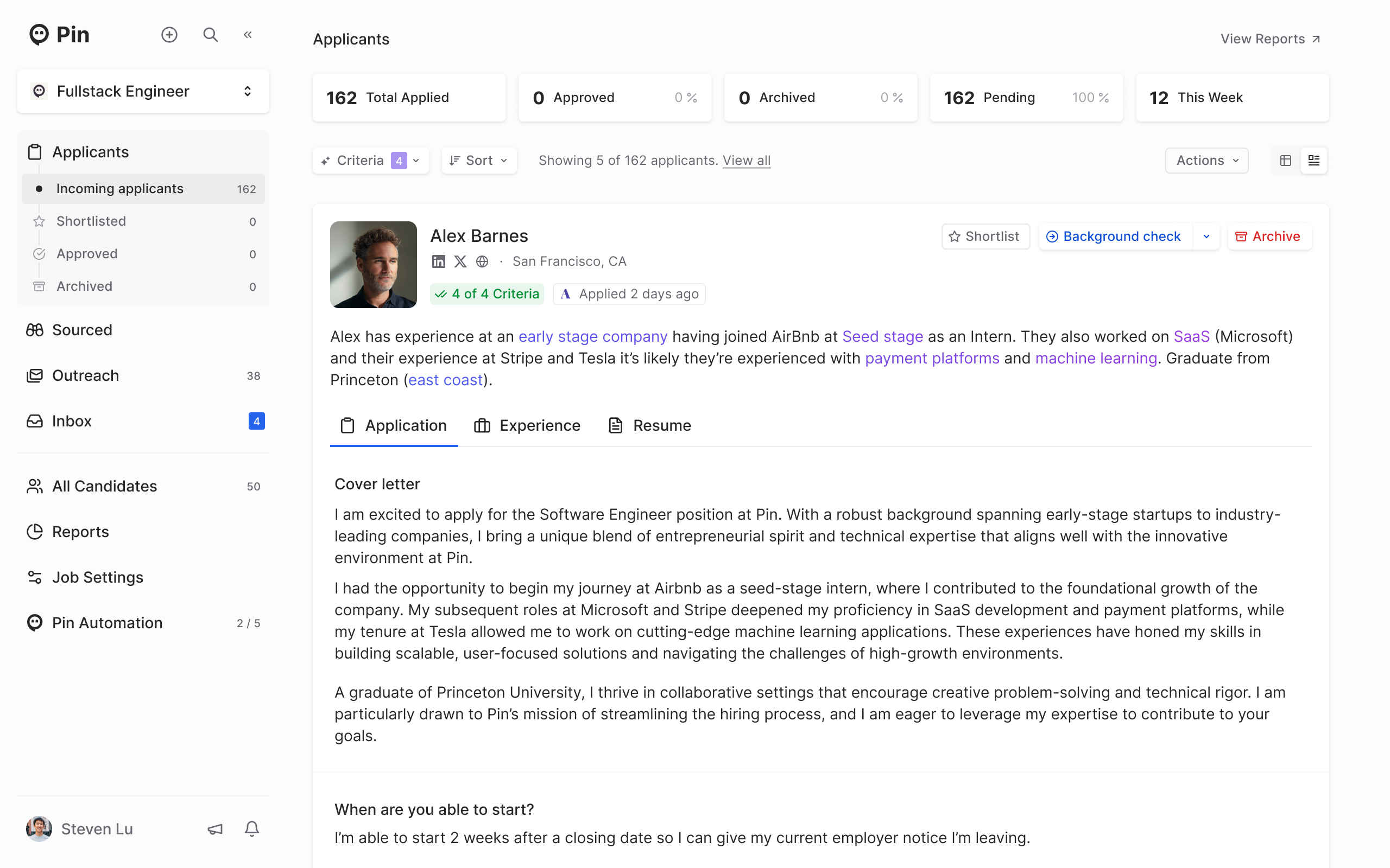 Applicant Review is now available in beta! This new feature analyzes your ATS data to identify and highlight top applicants, making it easier to focus on the best matches for your roles. We're inviting beta users to try it out. If you're interested, please reach out to our team — we’ll enable the feature and guide you through onboarding.