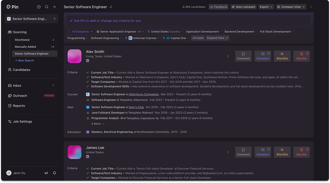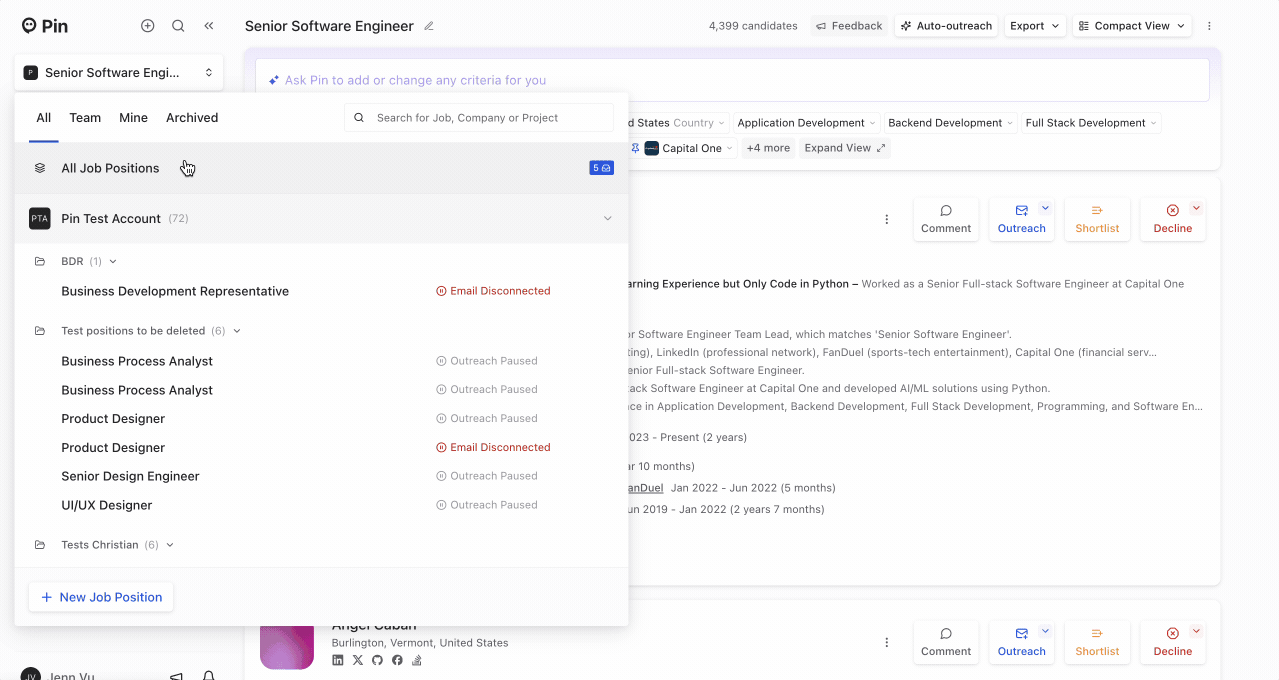 Pin will learn from your candidate choices and adjust your search results automatically to help show the best candidates for your job description and your selections. Most customers have seen a 20% increase in accepted candidates from Pin’s new pattern recognition algorithm.