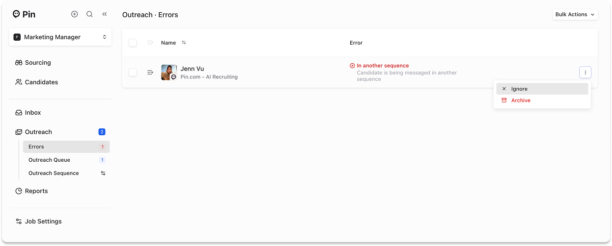 A new global outreach view and queue lets you see all candidates with errors across all sequences, including those that need manual review